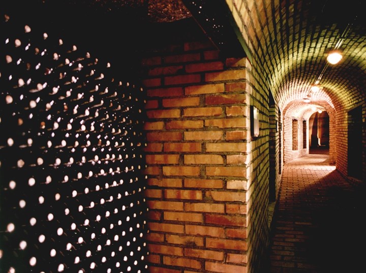 Wine barrels in a cellar